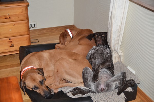 Considering to return the dog to the far right, she hasn't got any manners! ;-D No, she's perfect, just a bit odd sleeping positions on this one compared to the Ridgebacks I've had..
